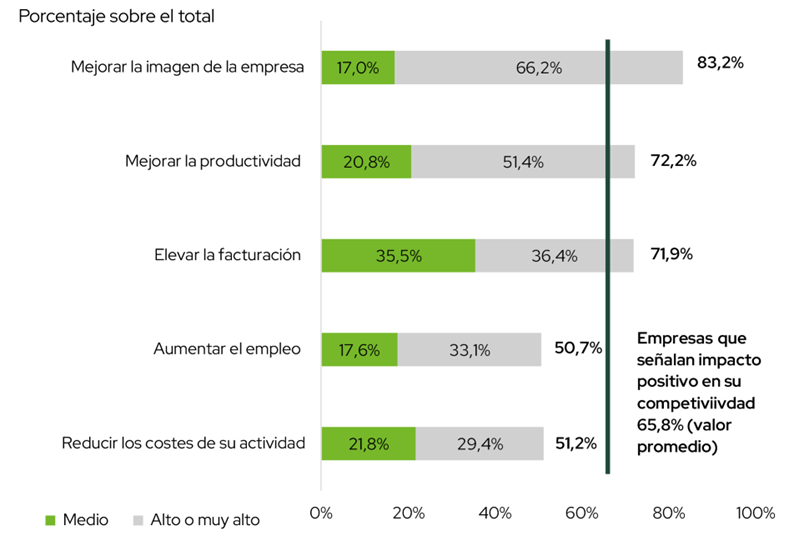 Además, el 72,2 % de las empresas indican que las normas tienen un impacto significativo sobre la mejora de la productividad y el 71,9 % reporta también un incremento de su facturación gracias a las normas.